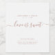 Simples branco e rosa de ouro "o amor é doce", rótulo personalizado de garrafa de vinho de casamento/noivado com estilo elegante de tipografia. Moderno, chique e clássico. Todo texto é personalizável, personalize com nomes de casais, data de casamento e um obrigado curto da mensagem. Perfeito como um favor de casamento ou festa de noivado.