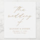 As etiquetas modernas do vinho de casamento exibem a frase "o casamento de", exibida em um roteiro elegante de caligrafia dourada em fundo branco. Personalize as etiquetas de vinho dourado com seus nomes, data de casamento e local de casamento. As simples etiquetas de vinho de casamento são perfeitas para usar em recepções de casamento, jantadas de ensaio e festas de noivado.