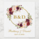 Watercolor Burgundy Floral Wreath Dourada Bride e Groove Monograma Casamento Vinho e Vinho espumante Rótulo da garrafa