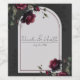 Etiqueta de Casamento Floral Cinza Sombrio de Rosas Vermelhas de Bordéus. Personalize esta etiqueta de vinho para o seu casamento ou evento.