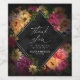 Leve os arranjos florais em cores brilhantes e quentes, que vão do coral e do rosa rosa a ouro amarelo, combinam-se com fundos vigiados e obsidianos para dar às peças desta elegante suite de casamento uma ambência escura e modesta. Esta etiqueta de vinho de casamento contém flores abundantes em volta de uma moldura em forma de diamante para guardar seus nomes, data de casamento e uma mensagem pessoal. Procure ID829 para ver a coleção completa.