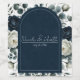 Rótulo de Vinho Casamento Floral Verde Moderno Azul Escuro e Branco. Personalize este rótulo de vinho para o seu casamento ou evento.