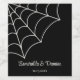 Adicione um toque especial ao seu casamento com temas góticos com esta etiqueta de garrafa de vinho personalizada. Ele tem uma grande ilustração da teia no canto superior e está pronto para ser personalizado com o nome da noiva e do noivo junto com a data do casamento. O texto branco e o gráfico da névoa ou da casca do ovo são colocados sobre um fundo preto.