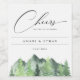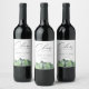 Cena de floresta e montanha em estilo rústico e aquarela, rótulos de vinho personalizados. Gráfico de caligrafia elegante "Brindes" com modelo de design moderno fornece linhas para nomes, data do evento e frase.