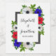 Design apresenta flores rosadas patrióticas, brancas e azuis do anêmona panda com eucalipto verde sobre uma cinza colorida de carvão.