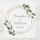 Círculo geométrico de ouro botânico Eucalyptus natural folha de vinho. Personalize isso com seus próprios nomes e detalhes para torná-lo seu. Perfeito para uma festa de recepção de casamento.