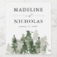 Etiqueta de vinho de casamento elegante, rústica, com uma floresta de caçadores verdes e pinheiros verdes e salgados. Personalize as etiquetas do vinho da pinheira adicionando seus nomes e a data do casamento. Projetado para coordenar com a nossa coleção de casamento Rustic Pine Forest.