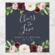 Etiquetas de vinho personalizadas são perfeitas para adicionar um toque personalizado único ao seu vinho de mesa, favores de casamento ou presentes de boas-vindas. O design floral chico apresenta "torcida para amar" com seus nomes e data de casamento em branco, flanqueado por grupos de flores cor d'água cor-de-rosa-pincel, marfim e burgundy marsala e folhagem verde em um rico fundo de marinho. Projetado para coordenar com nossa suíte de casamento Blush Romance e Midnight Romance.