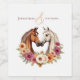 Adicione um pouco de elegância às suas garrafas de vinho com estes rótulos de vinho. Apresentando um elegante design de cavalos que abraça dentro de um arranjo floral colorido em forma de coração, esta coleção simboliza amor, harmonia e unidade — perfeita para um evento country-oeste com encanto rústico. Estas etiquetas transformam os vossos vinhos favoritos em adições elegantes à vossa celebração. Personalize-os com os seus nomes e data de casamento, criando um toque único para os seus hóspedes apreciarem. Explore esta adição de na moda à sua celebração, criando um copo para a sua história de amor em estilo refinado.