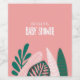 Rótulo de vinho de chá de fraldas tropical com folhas tropicais em tons de rosa e verde. Coordena-se com a coleção Baby on Conselho chá de fraldas.