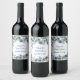 Rótulos de vinho para chá de noiva com flores em tons de azul e branco em aquarela. Também disponíveis em rótulos para vinho espumante e cerveja.
