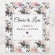 Chique e elegante rótulo de vinho para chá de noiva começa com uma estampa floral feminina rosa e roxa. Uma moldura branca retangular na frente envolve o nome da noiva, chá de noiva e data. Um coração roxo separa o texto. "Beijos para o Amor" está escrito no topo usando uma bela caligrafia. Este rótulo de vinho faz parte de uma coleção que contém os elementos necessários para criar facilmente um chá de noiva único e personalizado. Você deve ver um link para ele nesta página. Se você não vir o link ou precisar de ajuda com um item, por favor entre em contato.