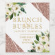 Etiqueta de Glitter Chá de panela rosa Dourada com título de Brunch e Bolhas personalizado e um pouco divertido junto com o nome da noiva junto com um design floral neutro bonito e sotaques geométricos de tendência.
