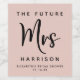 Mínimo moderno "A futura Sra" personalizou rótulos de vinho cor-de-rosa para o seu chá de panela. "Sra." está escrita em um grande roteiro elegante, e você pode personalizar com seu futuro nome casado, nome próprio e data de chá.