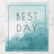 This wedding wine label features a minimalist and modern design with a soft watercolor background in shades of blue and teal, creating an airy and elegant feel. The layout is centered and balanced, highlighting the phrase "BEST DAY ever" in bold uppercase letters paired with a flowing cursive script for a touch of whimsy. The serene color palette and clean typography evoke a cheerful and optimistic mood, perfect for celebrating your special day. Ideal for adding a personalized touch to your wedding festivities, this label combines subtle beauty with a celebratory tone.