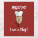 Cabeça de chef com chapéu, corcunda vermelha e texto personalizado.
