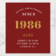Vintage aniversário de 40 anos Red & Dourado Rótulo de Vinho Elegante de 1986. Celebre seu marco com nossa exclusiva etiqueta de vinho Vintage aniversário de 40 anos de 1986. O rótulo meticulosamente projetado com matizes de preto e ouro impressionantes melhora sem esforço o apelo visual do seu vinho favorito. O ano de 1986, destacada no rótulo, acrescenta um retorno nostálgico ao dia do seu nascimento. Usando material de qualidade premium, este rótulo garante longevidade, cimentando ainda mais seu lugar como uma lembrança memorável da celebração especial de aniversário de 40 anos. Além disso, aproveite o benefício de personalizar este rótulo com seu nome, acrescentando um toque único e íntimo à sua celebração. ・ Design Vermelho e Dourado espantoso: dá uma aura de sofisticação e elegância a qualquer garrafa de vinho, fazer-a como uma peça central perfeita para a sua celebração de aniversário de 40 anos. Ano 1986 Apresentado: Adiciona um toque nostálgico, fazer que se sente especial no seu aniversário de marco. ・ Material de alta qualidade: Garante que o rótulo do vinho resista ao teste do tempo, evoluindo para um aspecto memorável Esasaemque que você irá apreciar ・ Totalmente Personalizado: Adicione seu nome à etiqueta para um toque íntimo e único nas suas comemorações ・ Fácil de Aplicar: A parte de trás da etiqueta é autoadesiva, garantindo uma aplicação sem complicações na sua garrafa de vinho