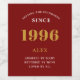 Vintage aniversário de 30 anos Red & Dourada Elegant Wine Label 1996. Celebre seu marco com nossa exclusiva etiqueta de vinho Vintage aniversário de 30 anos de 1996. O rótulo meticulosamente projetado com matizes de preto e ouro impressionantes melhora sem esforço o apelo visual do seu vinho favorito. O ano de 1996, destacada no rótulo, acrescenta um retorno nostálgico ao dia do seu nascimento. Usando material de qualidade premium, este rótulo garante longevidade, cimentando ainda mais seu lugar como uma lembrança memorável da celebração especial de aniversário de 30 anos. Além disso, aproveite o benefício de personalizar este rótulo com seu nome, acrescentando um toque único e íntimo à sua celebração. ・ Design Vermelho e Dourado espantoso: dá uma aura de sofisticação e elegância a qualquer garrafa de vinho, fazer-a como uma peça central perfeita para a sua celebração de aniversário de 30 anos. Ano 1996 Apresentado: Adiciona um toque nostálgico, fazer que se sente especial no seu aniversário de marco. ・ Material de alta qualidade: Garante que o rótulo do vinho resista ao teste do tempo, evoluindo para um aspecto memorável Esasaemque que você irá apreciar ・ Totalmente Personalizado: Adicione seu nome à etiqueta para um toque íntimo e único nas suas comemorações ・ Fácil de Aplicar: A parte de trás da etiqueta é autoadesiva, garantindo uma aplicação sem complicações na sua garrafa de vinho