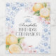 É hora de Par-tea! Elevem sua próxima festa de aniversário com este delicado buquê de flores de chinoiserie azul-claro. Este tema floral peculiar inspira-se no charme de um jardim francês, que apresenta um padrão de toile pastel com limões de anistia e flores rosadas e suaves.