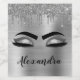 Cílios com Monograma e Inicial Nome Lantejoulas Brilho Metálico Folha Falsa Prata Escovado (Cílios), Extensões de Cílios e Rótulo de Vinho para Olhos. O design torna o presente perfeito para aniversário de 16 anos, casamento, chá de noiva, aniversário de casamento, chá de bebê ou despedida de solteira para alguém que procura um estilo moderno e descolado.