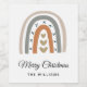Branca moderna e moderna com um fundo branco chico. Decorado com um arco-íris pintado e corações em bege, cinza e marrom. Personalize e adicione seu nome de família. Com o texto: Feliz Natal. Um símbolo moderno de esperança, perfeito para uma festa de Natal e janto.