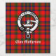 Escocês Clan Matheson red tartan xadrez padrão com crachá de crista de clã e cobertura de texto personalizável