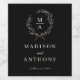 This tasteful and classic custom wine label design conveys an elegant look for your wedding or engagement celebration. A simple open laurel wreath of sketched leaves surrounds the monogram initial of the bride and groom. The elegant yet simple text template is ready to personalize with the bride and groom's names and wedding date. Shown here in classic black, this design is available in a variety of popular color choices.