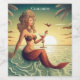 Sereia clássica sentada ao lado do mar com um coquetel de martini no pôr do sol para personalizar, personalizar mudando para seu nome