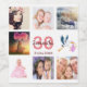 Uma etiqueta para uma festa de aniversário de 30 anos, celebrando sua vida com uma colagem de 8 fotos suas. Modelos para um nome, 30 anos e uma data. Data de nascimento ou data da festa. Coral e letras coloridas burladas. Fundo branco.