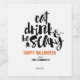 Seja o sucesso da festa com este hóspede personalizado e presente de anfitrião. Rótulo lê comer, beber e ser assustador.