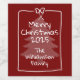 These festive personalized gift labels feature a charming hand-drawn doodle frame with “Merry Christmas” and your family name on a rich burgundy background.