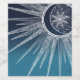 Um design de gradiente mágico, branco, dourado e da lua mandala azul e lacrimogêneo, com flores e folhas, estrelas, pontos, diamante, círculos, triângulos, formas de chevron, escala de sereia, padrão geométrico, feito com uma cor branca vibrante e brilhante, com uma lua brilhante palco crescente, uma estrela da flor da mandala, em tom azul marinho, e fundo de gradiente azul claro. Este lindo, místico, tema do universo, sol fofo, henna, trabalho de arte do estilo mandala, impressão de imagem original.