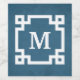 Design monograma com decoração de borda chave grega sobre fundo azul verde