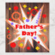 Design de Dia de os pais alegre fará um grande salto com círculos coloridos, smileys face bonitos e texto de "Dia de os pais Feliz" em uma madeira rústica, parecendo um fundo.