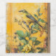 Esta impressionante imagem de mídia mista apresenta um par de vibrantes cortadores amarelos encalhados em meio a um enxuto verde e flores delicadas. Os pássaros são colocados contra um pano de fundo de páginas envelhecidas e texturizadas que acrescentam uma qualidade antiga e efêmera ao cenário. Esta peça faria uma bela adição a qualquer decoração caseira ou artigos de papelaria inspirados na natureza. Ele poderia ser utilizado em uma grande variedade de projetos criativos, como a publicidade em lixo, fazer de colagem, reservas de lixo e muito mais. As cores ricas, detalhes intrincados e o encanto nostálgico dessa trabalho de arte captam a essência do mundo natural de forma cativante.