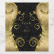Damasco floral preto e dourado, monograma, com espiral floral dourada