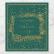 Dourada pinheiro com cone confetti e borda cada vinheta verde de Natal. Uma adorável design de casamento que inclui um quadro de pínus dourado com cone, agulhas e bordas de confete dourado sobre fundo verde.