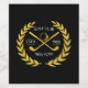 Etiqueta de vinho do clube de ouro personalizado em design de chic elegante, moderno, minimalista. Etiqueta personalizada de vinho de golfe com coroa de louros, dois tacos de golfe cruzados e bola de golfe. Etiqueta personalizada de vinho de golfe com o seu logótipo, nome, texto, ano, etc. Etiqueta de Vinho de Ouro Elegante, presente personalizado para o clube de golfe, jogador de golfe, equipe, treinador. Rótulo personalizado de vinho de golfe preto e branco e Dourado