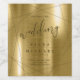 As peças nesta suíte de casamento, como esta etiqueta de vinho personalizada, apresentam sotaques modernos, escritos à mão, e um elegante fundo de ouro metálico sobreposto com um delicado padrão geométrico em número escuro. Os nomes da noiva e do noivo, a data do casamento e a mensagem pessoal podem ser personalizados usando o modelo fornecido. Procure ID648 para ver todas as peças neste conjunto elegante.