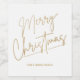 Feliz Natal em um falso roteiro de folha de ouro e seus nomes em letras quic, essas etiquetas de garrafa de vinho branco são na moda para presentes de Natal ou para etiquetar vinho servido em suas férias.