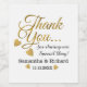 Casamento elegante e na moda favorece rótulos de vinho com obrigado de ouro, tipografia e corações de ouro. Personalize com nomes de noiva e noivo e data de casamento.