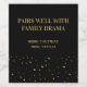 Adicione um pouco de humor às suas comemorações de feriado com estas etiquetas de garrafas de vinho novidade. Com fundo preto, a tipografia dourada diz "Pairs Good With Family Drama". Por baixo, personalize com sua mensagem festiva e seu nome. O fundo do rótulo tem pequenas estrelas de ouro e confete para o acabamento festivo obrigatório... perfeito para festas de Natal, presentes de Papais noeis Secretos ou como presente de novidade para um ente querido.