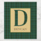 Design bonito celebrando seu patrimônio escocês, apresenta a letra D monográfica em Clan Duncan tartan xadrez com limite correspondente e texto personalizável