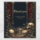 Elegância Gótica Escura. Arco espantoso apoiado por dois pilares majestosos terminaram num final escuro. Esses pilares estão luxuosamente cobertos de maria, cujas folhas verdes dão um contraste vibrante com os materiais escuros. Na base do arco estão três crânios humanos realisticamente representados cercados por mais mariposa. Estes elementos acrescentam um significado mais profundo à design e lembram a transição da vida e a força do amor que persiste mesmo além da morte.