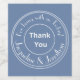 Elegant Wedding Custom Names Thank You Dusty Blue Wine Label. Created by artist RjFxx *All rights reserved. #CustomWineBottleLabels #ThankYou #ZazzleMade