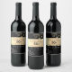 Elegante, vintage, rótulo de vinho de aniversário de casamento preto e dourado chic com renda floral dourada.