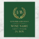 Design de etiqueta de vinho elegante, simples e monificada. Dourados tons lourel wreath com um monograma personalizável. Modelo de texto personalizável e em plano de fundo verde.