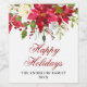 Rótulo de Vinho Elegante Poinsettia Vermelha de Natal em Aquarela
