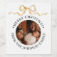 Esta etiqueta moderna e elegante para cartão de Natal com foto personalizada em forma redonda é uma excelente escolha para uma família adicionar um toque pessoal aos seus presentes de Natal. Os adesivos podem ser usados como etiquetas em garrafas de vinho e outros presentes personalizados. Crie o seu usando nosso modelo simples e clássico! O design apresenta uma forma redonda com a foto da sua família no centro. As suas saudações de Feliz Natal ficam no topo e o nome da sua família pode ser substituído na parte inferior. O texto está em tipografia elegante clássica. No topo, há um laço em dourado. Pressione o botão "Personalizar este modelo" e substitua todos os detalhes com as suas informações. O adesivo é completamente personalizável. Perfeito para famílias e empresas!