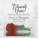 Estas lindas etiquetas de garrafa de vinho são a adição perfeita à sua celebração de casamento. O design apresenta um rosa cor de laranja ferrugem enfiada ou queimado, de solteiro longo, refletindo numa piscina de água com ondulações e ondas. A legenda diz: Obrigado por comemorar conosco. Há espaço para os nomes dos casais de casamento, a data do casamento e o tipo de vinho ou outro conteúdo da garrafa.
